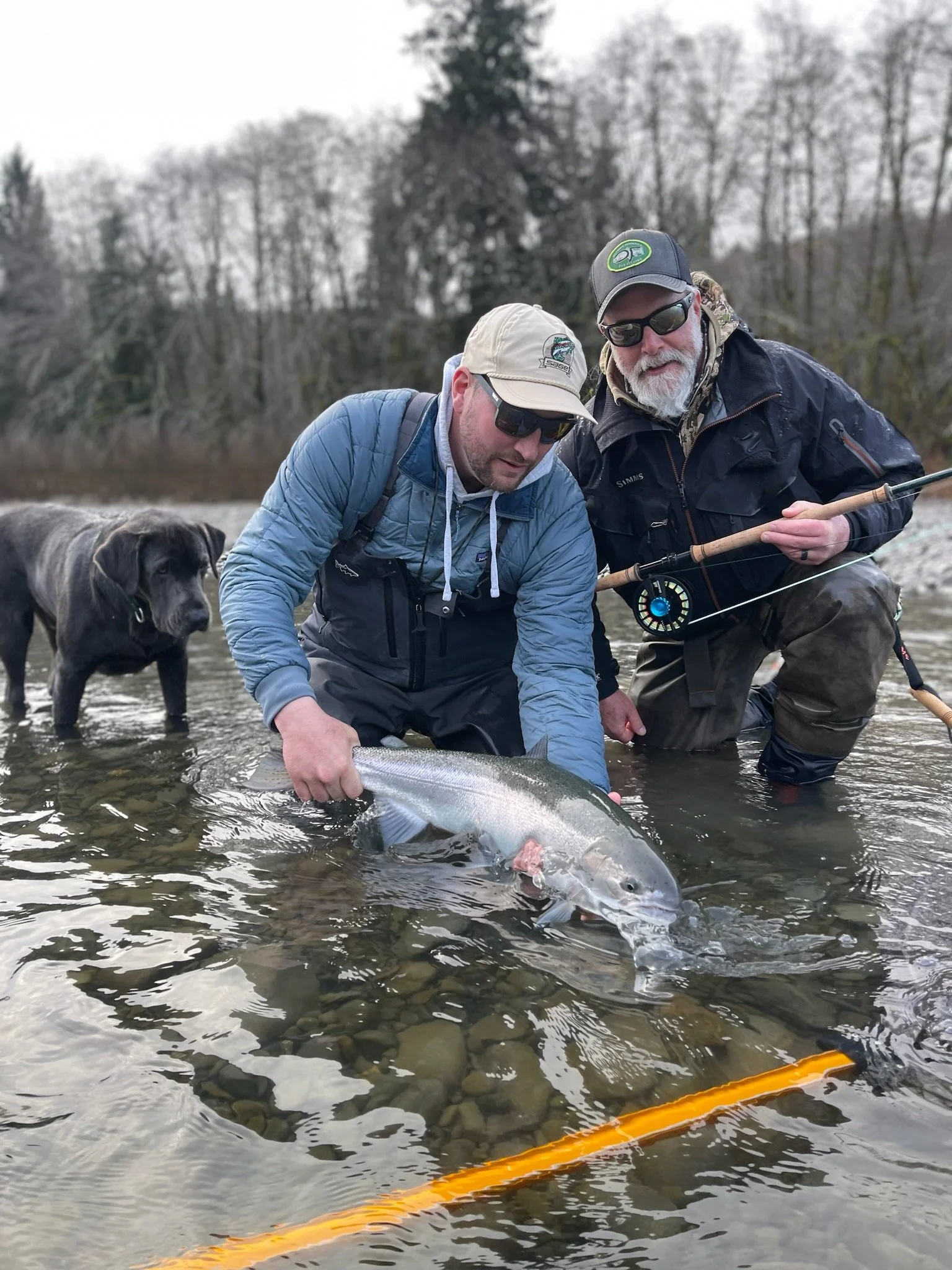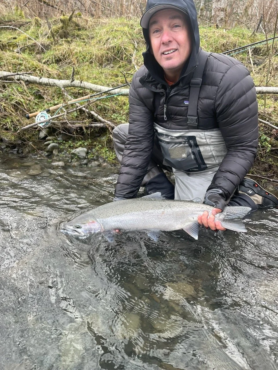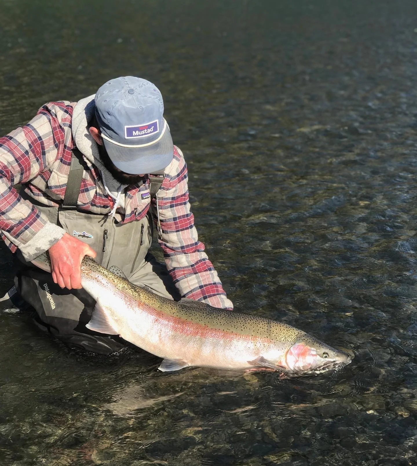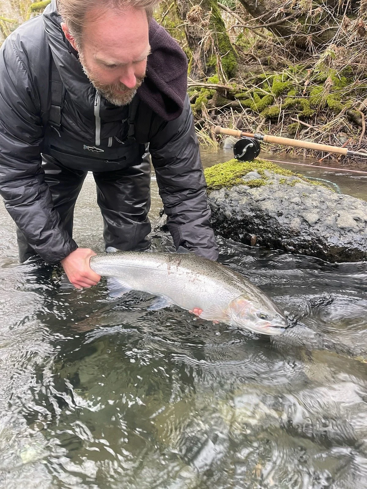 Winter steelhead are a type of anadromous rainbow trout that migrate from the ocean to freshwater rivers and streams to spawn during the winter months. They are prized by anglers for their strong fighting ability and are known for their chrome appearance. These fish play a vital role in freshwater ecosystems, and hold a very special place in our hearts not only as anglers but conservationist. Please handle with care.