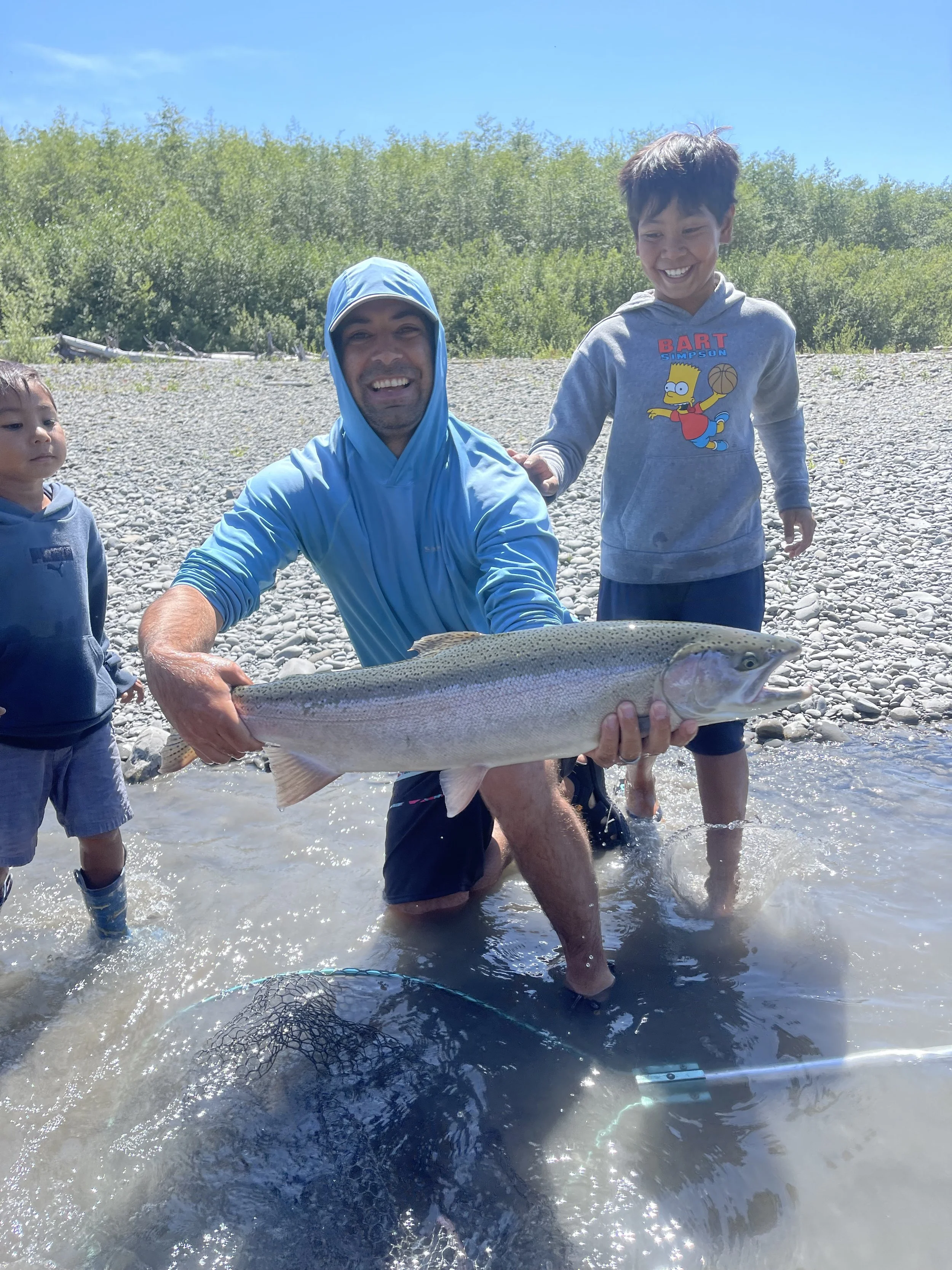 Summer steelhead, like their winter counterparts, are anadromous fish that return in the summer months. They are known for their acrobatic jumps and powerful runs, making them highly sought after by anglers. These fish are deeply important, and held dear to our hearts. Please handle with care.